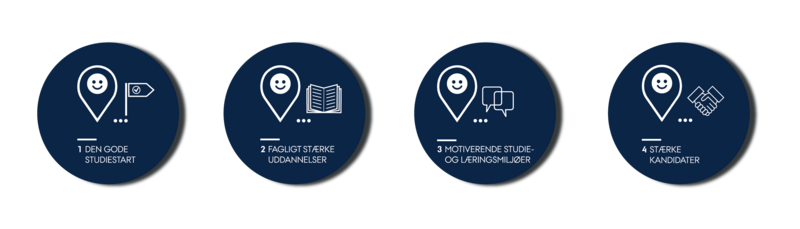 Den årlige status er systematiseret efter de fire delpolitikker, som Aarhus Universitets kvalitetspolitik for uddannelsesområdet er opdelt i: