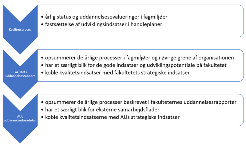 Den endelige uddannelsesrapport og medfølgende ledelsespåtegning godkendes i Fakultetsledelsen, hvorefter den indgår i den samlede Uddannelsesberetning for Aarhus Universitet.